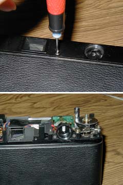 巻き上げレバーをはずし,3つのネジをはずせば,軍艦部を取ることができる。巻き戻しクランクが底部にあるのは,こういうときにはたいへん都合がよい。