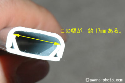 100円ショップ「ダイソー」で売られている配線カバーのうち,「Lサイズ」(幅21mm)というものの内側の幅が,約17mmだった。