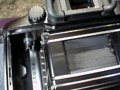 これは表面だけではなく,シャッター幕とシャッター幕の間のオイルを完全に取り除かないとダメだと悟った私は,レンズクリーニング用の不織布を細長く折り畳み,ベンジンを染み込ませてシャッターの幕と幕の間を,36mmx24mmのマスクに隠れた奥の方まで念入りに掃除を始めた。更に30分ほどが経過し,不織布に付く汚れが大分減ってきたので,又私はシャッターを切ってみた。すると軽快にシャッターが切れる様になった!!しかしまだ問題は残っていた。1/1000以上の高速だと,最初のワンショットがまだ「カラ落ち」になる。連射すれば二コマ目からはちゃんと開くようなのだが,3分も置いてから再度シャッターを切ると最初のショットが「カラ落ち」なのだ。