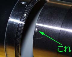 鏡胴に小さなネジがある。これは鏡胴を固定するネジである。鏡胴はいくつかの金属筒をネジこんで連結したものであり,これをゆるめることで,鏡胴を2つにわけることができる。
