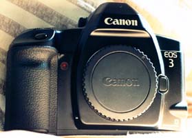 とある休日,休日出勤で会社に行く途中,カメラのキタムラあけぼの店に寄った。開店直後に行ったためか中古コーナーで店長のNさんが陳列準備をしている。私は中古を一通りチェックし,めぼしい物が無い事を確認し,帰ろうとするとNさんが「これから沢山二階から(新入荷の中古を)下ろしますから見て行ってください」と私を呼び止めた。やがて段ボール箱二箱の中古がやってきて,Nさんが「これがちょっと面白いですよ」と言って取り出したブツがEOS3。EOS3の中古相場は高く個人的に全く興味が無い。ただ初めて見る中古物件なので「もう出ましたか?EOS3……,値段は?」といって値札を確認すると,なんと8000円。そして価格の下には「メーカー修理不能」と断り書きがしてあった。Nさんに「どうしたの?」と聞くと,「全く動かない」「水没品ですか?」「いや,落としたんです」と測距点選択ボタンの有るところを指さした。そこには落下時の痛々しい傷やひび割れがあり,測距点ボタンは無く,砕けた部品がその辺りを埋め尽くしていた。ボディ上端の液晶表示部分のカバーも取れかかっていた。取り敢えずはチェックしようと思い,隣にあったEOS10から電池を借用し入れてみた。電源は入った!しかし訳の分らぬ表示「SEL」が出て,ファインダー内では測距点が赤く点滅していた。それ以外のことは何も出来ない。