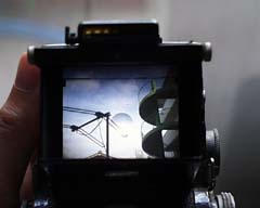 1は,適当なジャンクの二眼レフカメラが手もとにないので,却下。2が素直でよいかと思ったが,適当なジャンク品が手もとにあったので3の手法を選んだ。