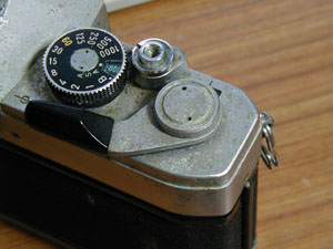 このカメラを譲ってくださったのは,某大学の臨海実験所の先生である。そのような場所で使われ,長年にわたった放置されてきたせいか,画像のように表面にサビが浮き出ていた。また,フィルムカウンタが0に戻らなくなっていた。不思議なことに,このような状態でありながら,シャッターや露出計は動作している。このころのカメラは,基本的に丈夫だったのだろう。