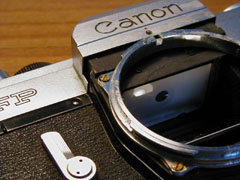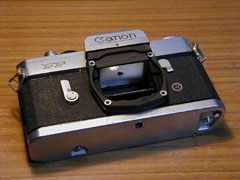 キヤノンFPは,1964年に発売されたキヤノンFXから外光式露出計を省いた機種である。当時,「プロは内蔵露出計を使わない」という風潮があったようだが,この機種は外付け露出計への配慮がきちんとなされており,FXの廉価版という位置付けの方が強かったのではないだろうか。