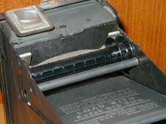 供給側は,その都度フィルムを巻きかえたりせず,120フィルムをそのまま使えると便利である。そのための継ぎ足を,120フィルムのスプールを使って作成した。