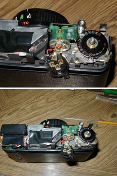 巻き上げレバーをはずし,3つのネジをはずせば,軍艦部を取ることができる。巻き戻しクランクが底部にあるのは,こういうときにはたいへん都合がよい。