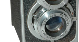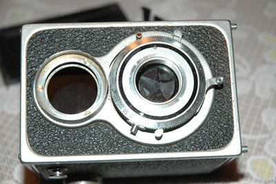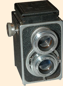 カメラについて1955年に発売された廉価版二眼レフカメラ。ビューレンズとテイクレンズの外周がギアになっていることで連動し,ファインダーを見ながらピント調整ができる(前玉回転式)ようになっている。いわゆる二眼レフカメラブーム末期の製品であり,前玉回転式,範囲の狭いシャッターユニットを採用した廉価版カメラとして,1つの完成された内容とスタイルをもつ。