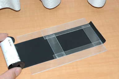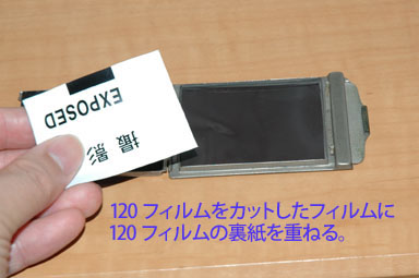 120フィルムには裏紙があり,それを間にはさめば,フィルムをおさえる板の反射を気にする必要がなくなる。