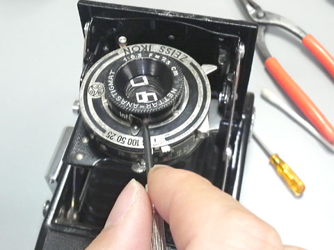 このカメラは,シャッターの動きも蛇腹の状態も悪くない。レンズの清掃だけで,実戦配備が可能になった。