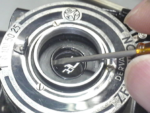 このリングは,押してもまったく動かない。きっちりとはまっているようだ。シャッター部分を分解しなければならないのだろうか?それは,できるだけ避けたい。