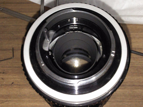 この時代のシンプルなレンズは,絞りなどの連動機構もシンプルで,後玉からでも分解しやすいと言えるだろう。