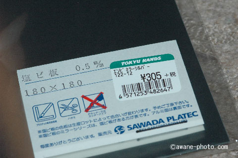 本来はきちんとメッキをしなおすべきなのだろうが,このカメラにそこまでの費用はかけたくない。以前はアルミ箔を貼ったのだが,それよりも効果のありそうなものとして,ミラー状になっている塩ビ板を試してみることにした。