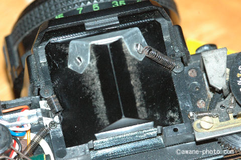 あとは,元通り組み立てる。アルミ箔よりはマシだが,ファインダーの見え具合はすっきりしたものにはならないし,その部分での厳密なピントあわせは困難である。それでも,まあなんとか我慢できるくらいにはなった。