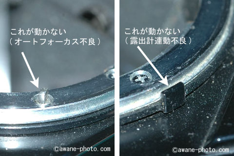 オマケでついてきたほう(B)は,露出計と連動するAiカプラが動かなくなっているジャンク品である。