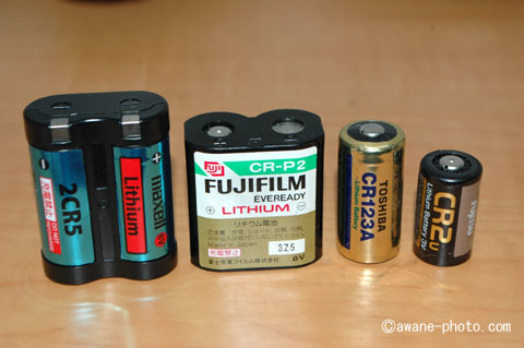 カメラの電源として使われるおもなリチウム電池は,上記のように4種類ある。