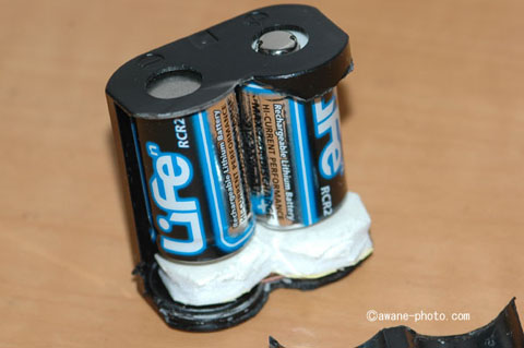 このCR2型充電式電池とさきほどのアダプタがあれば,CR2やCR123Aを必要とする機器を使うときに,電池代の心配が小さくなるというものだ。さらに,CR-P2電池の殻を利用してアダプタをつくれば,CR-P2用の機器でもこの充電式電池を使えるようになる。
