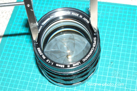 目的地は,絞り羽根である。前玉から分解するべきか,後玉から分解するべきか,迷うところだ。まずは,分化しやすそうな,前玉から分解していくことにする。