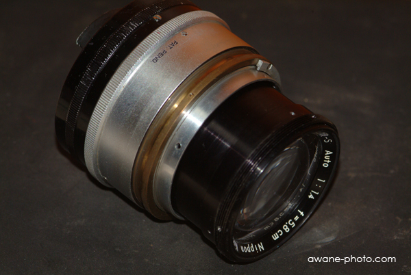 ニコンF用に発売された標準レンズとして,はじめてF1.4という大口径比を実現したレンズである。ニコンF本体の発売よりやや遅れて,1960年3月に発売された。1962年3月には,後継モデルNIKKOR-S Auto 50mm F1.4が発売されている。そのため,NIKKOR-S AUto 5.8cm F1.4の発売期間は,あまり長くないものになった。