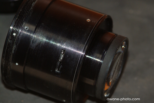 つぎに,鏡胴の先にある小さなネジをはずす。